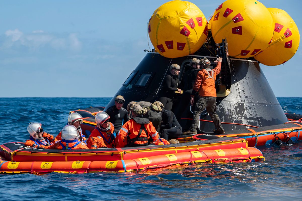 C’est par ces mots que le commandant Reid Wiseman a annoncé que la phase la plus périlleuse (la replongée dans l’atmosphère à plus de 30 fois la vitesse du son) était passée. Les trois parachutes principaux se sont déployés comme prévu, ralentissant la capsule avant son arrivée en douceur sur l’eau.