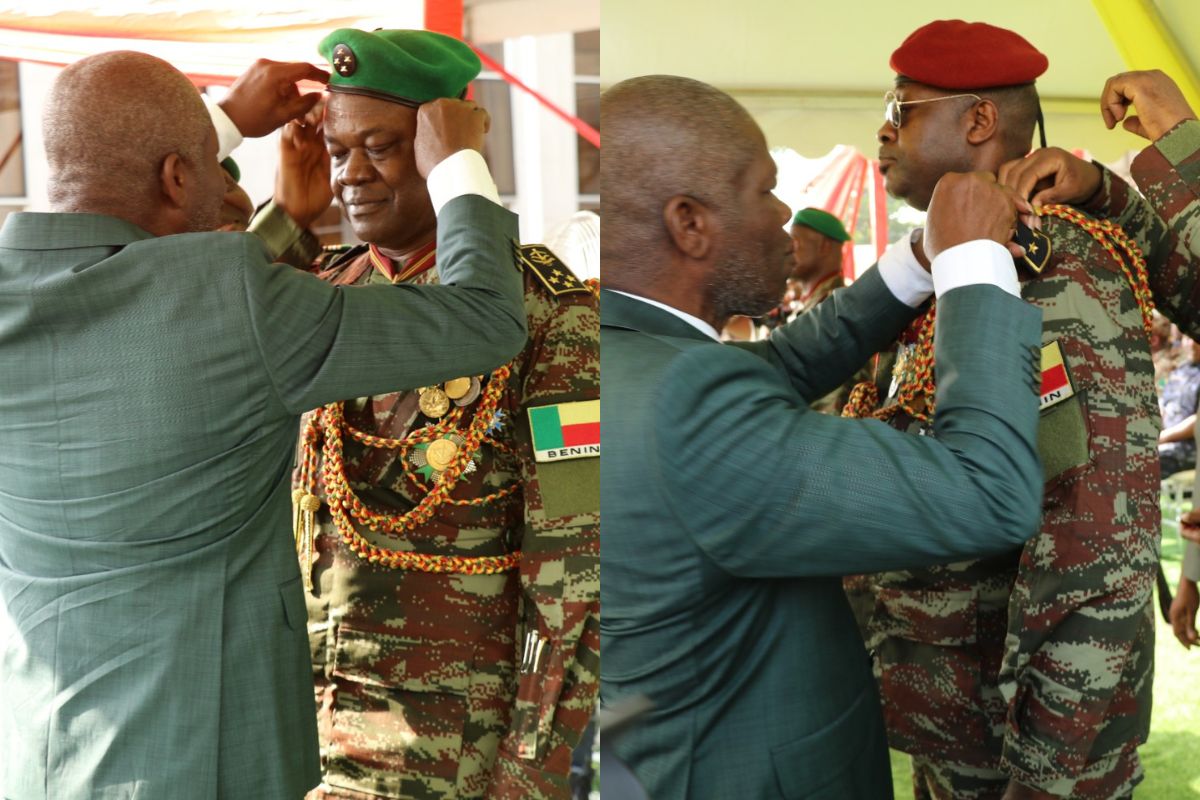 La cérémonie officielle de remise des attributs de grade s’est tenue dans un cadre solennel, en présence de hautes autorités civiles et militaires. Le Général Abou Issa a reçu les quatre étoiles correspondant à son nouveau rang, tandis que le Général Faizou Gomina s’est vu remettre les deux étoiles, symbole de son élévation. Le ministre de la Défense nationale, Alain Fortunet Nouatin, a transmis aux récipiendaires les félicitations du Chef suprême des armées, saluant leur sens du devoir, leur loyauté envers la République et leur engagement constant au service de la Nation.